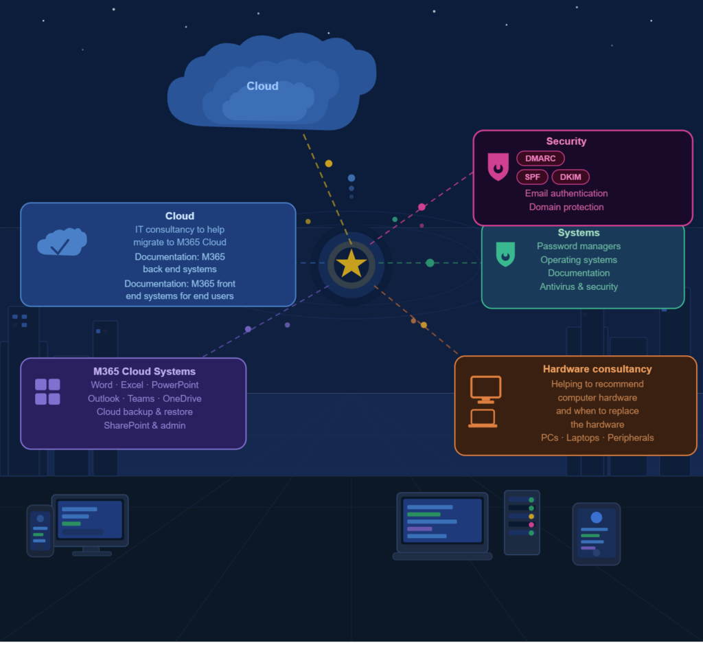 Welcome to IT Star Services. We are new and happy to deliver one off consultation for small businesses from managing desktops, laptops and help migrating to Microsoft 365 Cloud for personal and small business.