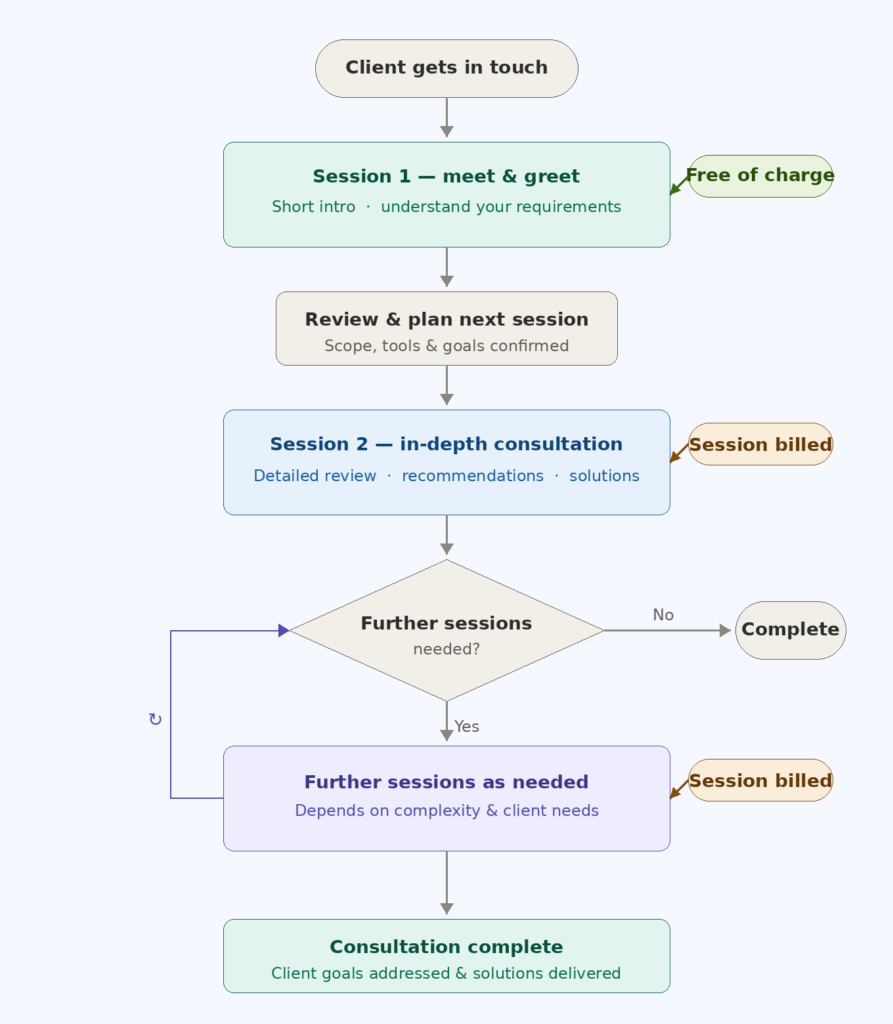 One off sessions for helping your business navigating around applications such as: