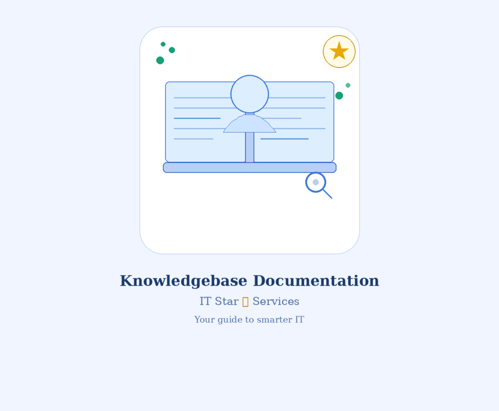Documentation (Optional add on). Please note we can create new documentation from the consultation services if required. However if you like this optional service please visit: Knowledgebase Documentation – IT Star Services